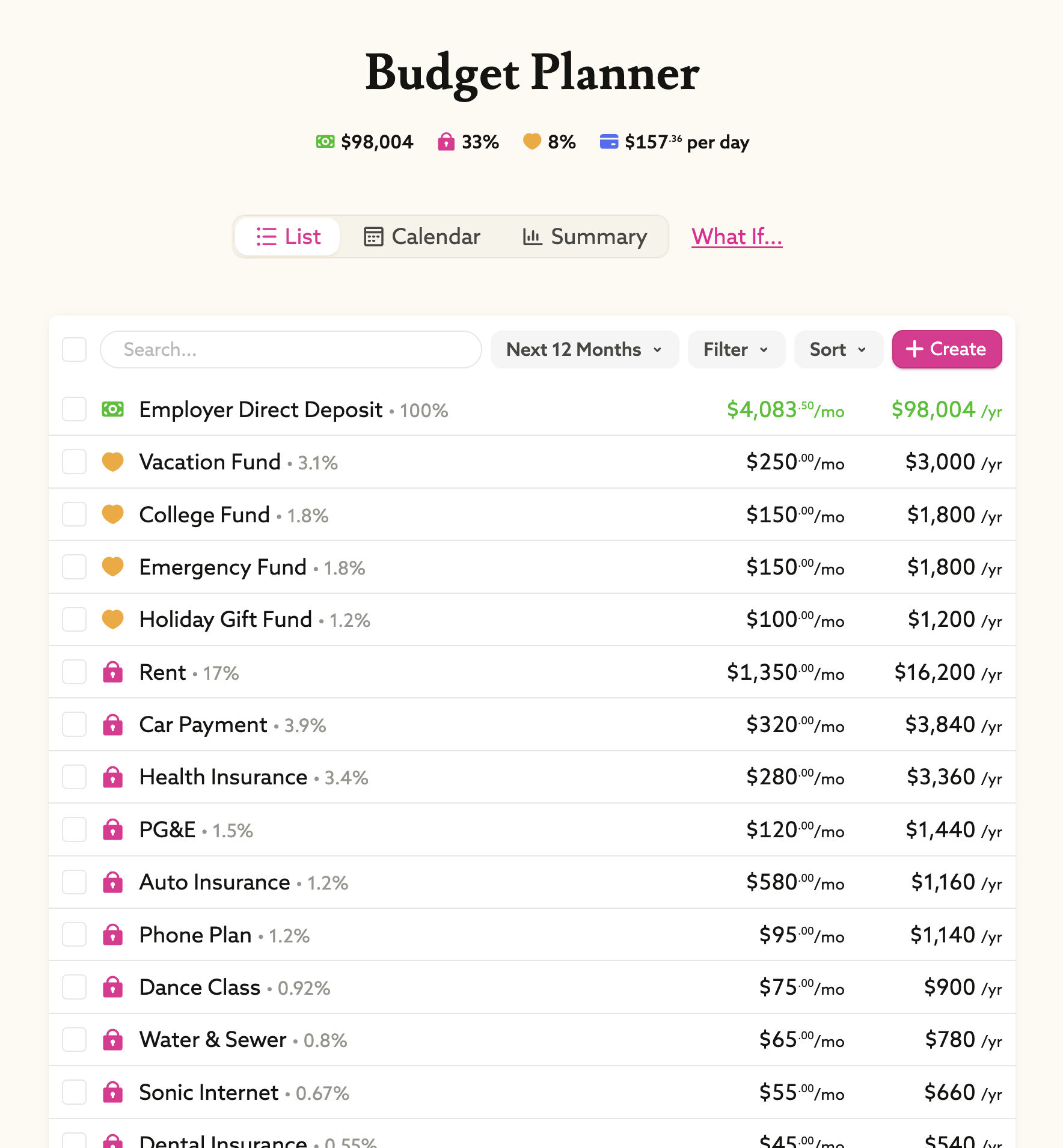 Calendar-Based Budget Planner